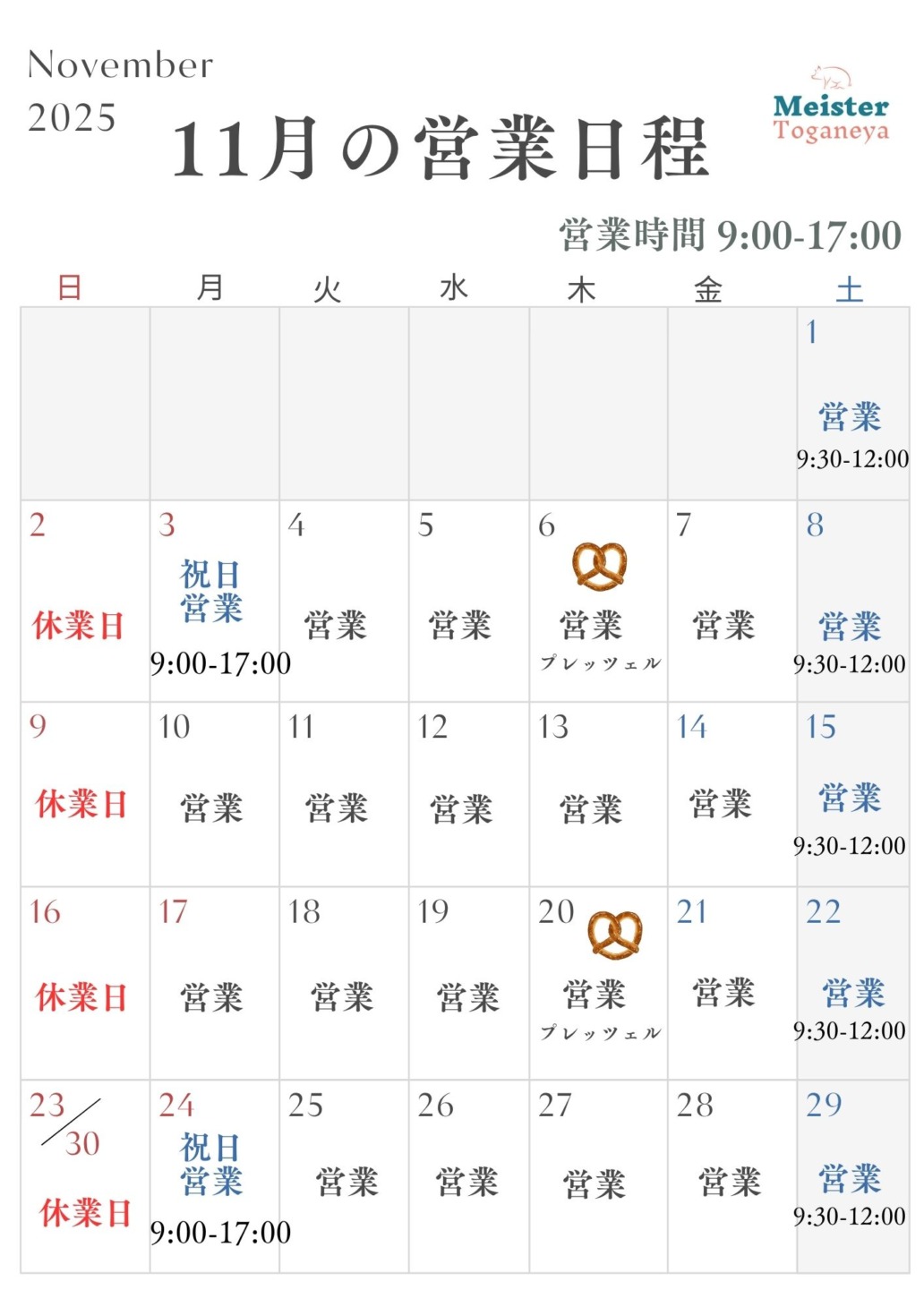 11月の営業日程